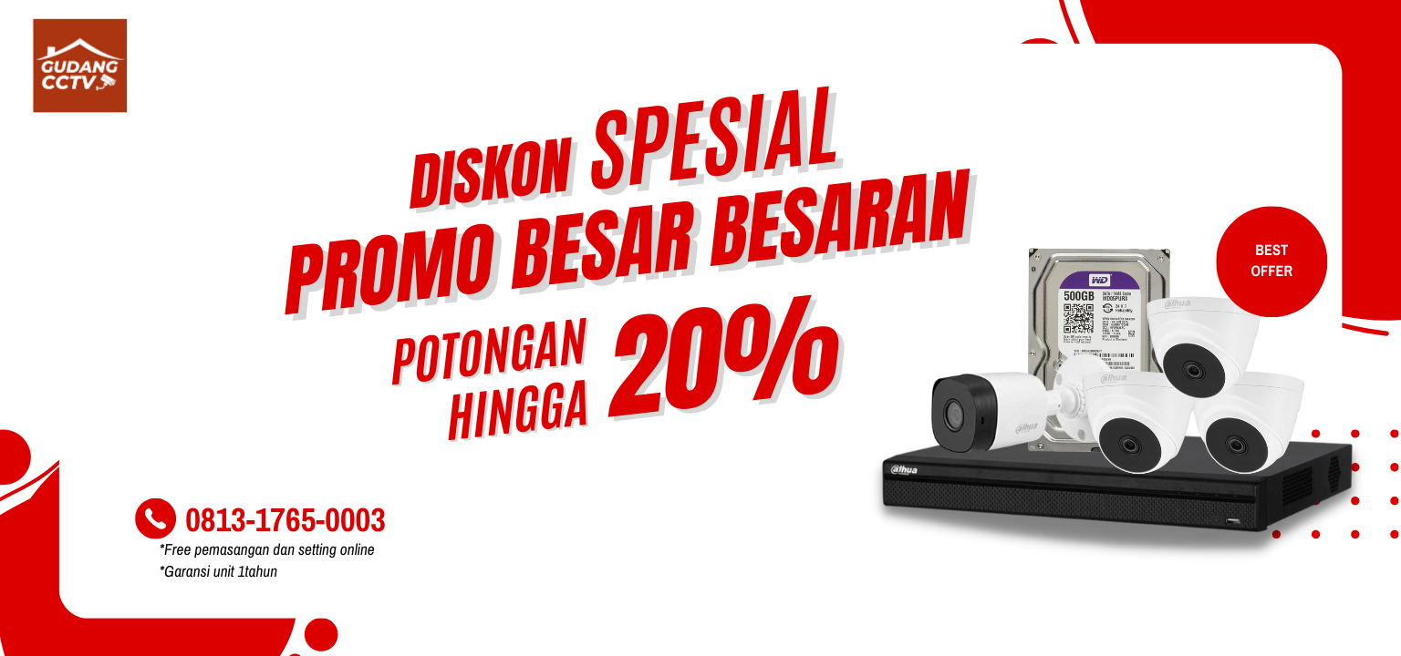 Untuk menjalin relasi dan memberikan kepuasan kepada pelanggan, saat ini Gudang CCTV memberikan promo paket CCTV 4 kamera Dahua & Hikvision diskon lebih 20% Cek Harga Paket CCTV Selengkapnya klik disini